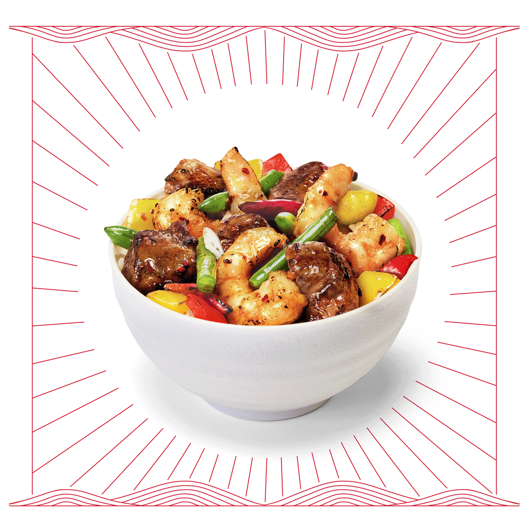 Firecracker Steak & Shrimp isn’t just a meal, it’s a land-and-sea experience, pairing premium steak with fresh shrimp. The creative drew inspiration from traditional Chinese print design, reinterpreting classic frames and ornaments in a way that feels distinctly Panda Express, complete with recognizable brand icons.