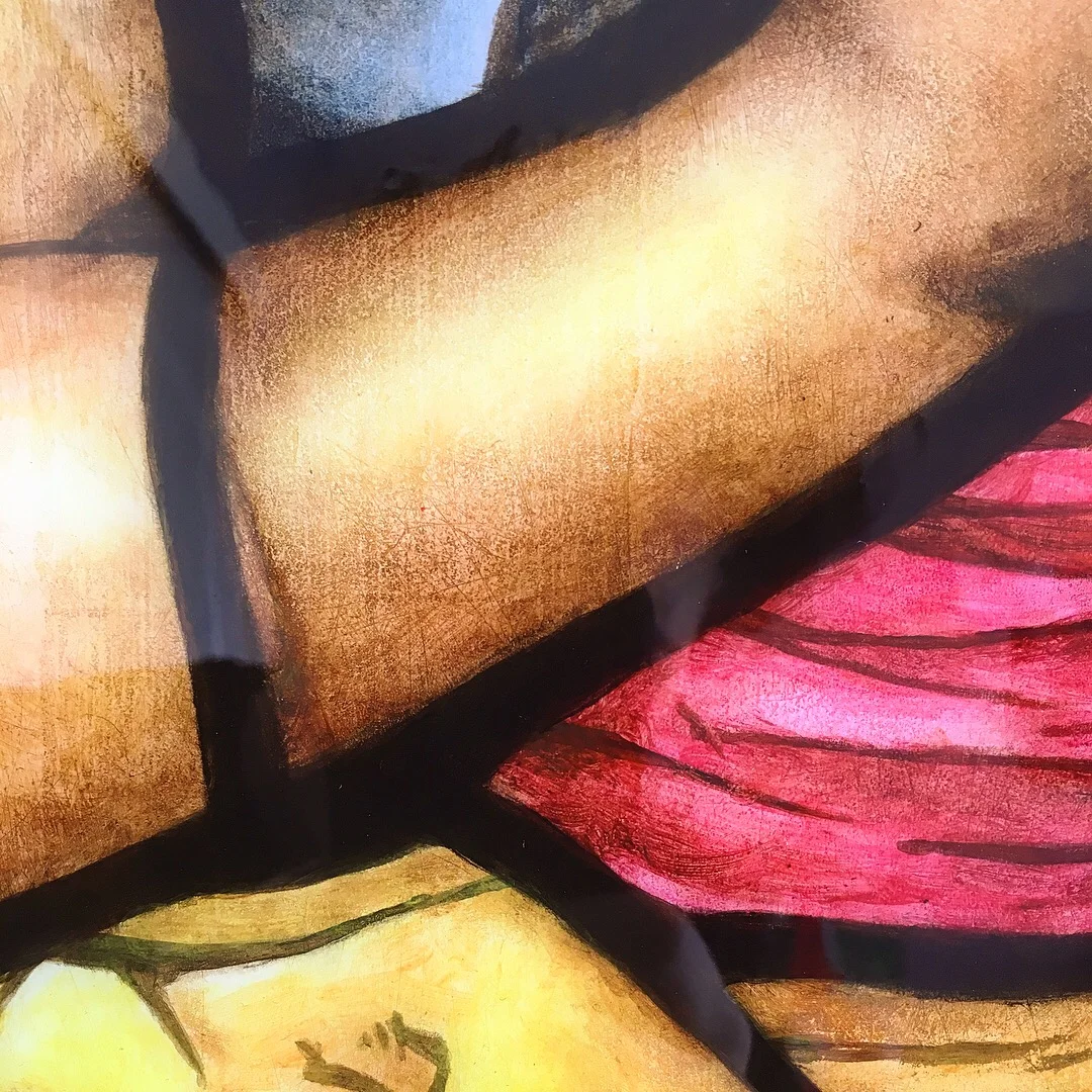 The beginnings of a new series of paintings I am working on. My goal is to capture the light and ambiance of stained glass with oil paint.